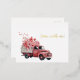 A cute, lovely pink old rustic truck full of lovely pinkish flowers with the foil saying "come with me". the most romantic expression for Valentine.