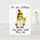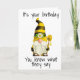 This card is great fun and good quality. I loved the humour inside and on the back. There is the opportunity to change the orientation of this card from landscape to portrait, which I did. It is relatively straightforward to amend the typeface to fit the new orientation. It was well packaged with no plastic. The printing on this card is excellent.