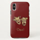 Greek masks of comedy and tragedy adorn this maroon case. Change or delete text to personalise