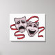 Vector illustration of comedy and tragedy theatre masks with a red ribbon.
