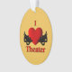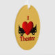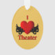 I Heart theatre with masks of comedy and tragedy on either side of the big red heart.