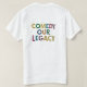 The image shows the words "COMEDY OUR LEGACY" spelled out in colourful, wooden letters The versatile design can be adapted to various t-shirt styles and colours.