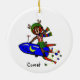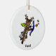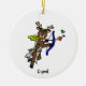 Cupid and Comet pull side by side, so this ornament has Cupid with her bow and arrow on one side and Comet with a love that reaches the moon on the other.