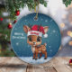Comet! Whimsical reindeer baby woodland animal. Blue holiday season round ceramic ornament featuring a playful fawn forest cartoon doe character graphic wearing a cute Santa hat, and Merry Christmas written in white. Cute wildlife deer with antlers for decorating your Xmas tree or as a thoughtful gift or present marker, this decor makes a cherished keepsake for years to come. Customize by changing the text, the font, the font color, or remove the text. You can even transfer this festive design onto other products. Enjoy this design your way! 🎄🦌