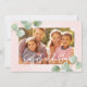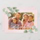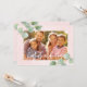 This holiday card features light pink and eucalyptus that feels light and airy. A nice way to showcase a vacation photo or warm climate picture. Customise your message, photograph and family name