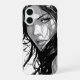 This black-and-white artwork is a close-up of a woman’s face, drawn in a bold comic style. Her intense gaze is framed by flowing, wavy hair, which adds dynamic motion to the piece. Highlights on her face and hair create depth and contrast, with the grayscale tones skillfully emphasizing texture and shading. The fine line work and crosshatching give the piece a dramatic and expressive quality, typical of high-contrast comic illustration styles.