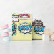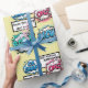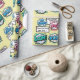 This custom gift wrapping paper features a colourful comic book theme over a yellow background. Popular comic strip action words and phrases such as, "Oh, Snap!" "OMG!" "BOOM!" and "WOW!" are placed around the edges in speech bubbles. A sample "Happy Birthday" message is printed inside a text area followed by a sample name. You can personalise the wrapping paper to include your own custom name or other text. Another message is printed in a text area to the side. It's perfect for a bridal shower, birthday party, or other exciting celebration.