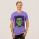This is a Comic Frankenstein T-Shirt. The design features a cute green Frankenstein on a purple background. The t-shirt shown is a Bella-Canvas Purple Triblend T-Shirt. The image is the front and back of the t-shirt. You can change the image with the Personalise button.