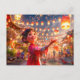 Comic Girl with Lanterns Celebrating Chinese New Y Holiday Postcard