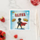 Make a child’s birthday extra special with these fun superhero comic style birthday party napkins! Featuring bold 3D lettering, playful POW & WOW elements, and a heroic character design, these napkins are perfect for little heroes who love action and adventure. It can be personalized with any name, making it a unique keepsake for birthdays.