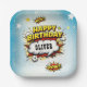 Comic Style Superhero Boy's Name Birthday Party Paper Plate