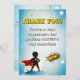 Comic Superhero Boy's Name Birthday Thank You Card. This fun comic-style thank you card features bold lettering, playful WOW! detail, and a heroic design that kids love. Personalized with the birthday child’s name, it’s perfect for thanking friends and family after a superhero birthday party.