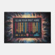 A doormat with a funny barcode design that says Scan Your Feet Here. The barcode is made of colourful lines and includes footprints in the bottom row.
