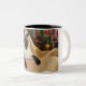 Comical Seal Point Siamese Cat Licking It's Nose Two-Tone Coffee Mug