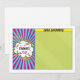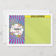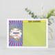 Unique and fun pop art comics comic book Bar Mitzvah flat thank you card. Your son's personalised thank you message can be written in the green part of the card. This comic book Bar Mitzvah flat think you card is modelled after a comic strip like you'd see in the comics section of a newspaper or what you'd see in superhero comic books. It's done up in the pop art comic book style with bright colours, sunbursts and clouds. The colours on this comic book themed Bar Mitzvah thank you card are bright blue, red, yellow, green, orange pink, black, and white.