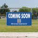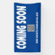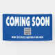 Coming Soon Business Opening Sign Banner to advertise that a new business will soon be opening in a location. Smaller size banner good for window or small display space. Swap out the logo placeholder with your own image. Edit the text line to your own information. Change the background colour if you like. Large white letters on colour background for attention getting banner for a new business.