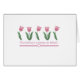 A row of pretty pink tulips on tulip design Tshirts, mugs, tote bags, buttons, and more that reads "Everything's coming up tulips!". These pretty pink tulip design items make great mum gifts!