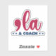 Show your support for Kamala Harris and Tim Walz with this trendy kiss cut sticker design. Featuring a comma and "la" to let everyone know how to pronounce Kamala's name and COACH, a nickname for Tim Walz. This sticker shows your support for Kamala Harris and Tim Walz for president and VP in the 2024 presidential election.