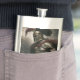 The product is a good size and came exactly as it was pictured. The lid is not attached to the flask, which could be dangerous on drunken nights... The print came out surprisingly well and looks very sharp. Would definitely recommend.
