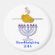 Fun Thanksgivakkah / Hanukkahgiving commemorative magnet with humourous graphics of a roasting turkey on a spit rod above a menorah. Blue text, on the bottom reads, Thanksgivakkah 2013. What a special time to celebrate and will not happen again for 70,000 years!
