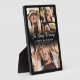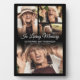 Personalised picture memorial plaque featuring a black background, 4 treasured photos, the saying "in loving memory", their name, and dates.