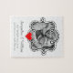 Create your very own, unique keepsake puzzle using your own wedding photo. Cute doodle scribble style curly swirly photo template frame area highlights your photograph, whether it be in black and white or full colour. Small red heart in the centre adds an extra pop of colour, and there are three custom text fields for your names, date of marriage, and location of the wedding ceremony.