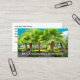Office and commercial landscaping and lawn care services business cards created with a graphic of an office building and palm trees as a backdrop.