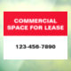 The top line of the display text is white and says Commercial Space for Lease. The bottom line has black display digits for a phone number. All text can be edited or deleted.