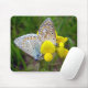 Common Blue Butterflies mating (Polyommatus icarus). Male is blue and female is brown
