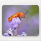 Macro common red soldier beetle (Rhagonycha fulva) on blue flower