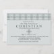 The soft blue background has a top border of an intricate cross ribbon trimmed in dark teal. Suitable for any religious celebration.