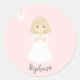This beautiful and sweet First Holy Communion design of a blonde little girl holding her first rosary is on a Pink background with a peaceful white dove. Cherish the great memories of your child’s first holy communion with this beautiful design. Check out the matching First Holy Communion accessories, stationery, and communion gifts.