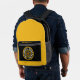 Backpack black and gold with white and gold graphics with "#COMOCOU COLUMBIA MISSOURS CENTER OF THE UNIVERSE GO AHEAD YOU CAN DO IT" with Y-NOT-ME logo in the centre. Columbia, Missouri is a city on the rise. This design is a shout-out to Columbia.