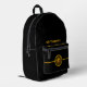 Backpack black with brown and gold Y-NOT-ME logo in front, with gold horizontal line behind with "GO TIGERS!!!" "GO AHEAD-YOU CAN DO IT" at the top front. This design is a shout-out to Missouri`s great sports program.