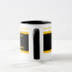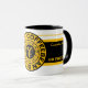 Mug black and white 11oz. with a circle over a rectangle black and gold with "THE JUICY COFFEEBEAN" inside the circle with "Columbia, MO GO TIGERS!!!" also with the Y-NOT-ME logo. This design is a shout-out to the great state of Missouri, the SHOW-ME state. Also, to a growing and progressive city, Columbia, Missouri.
