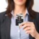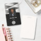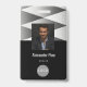A classy, black and white business design that is fully customisable, front and back. Professional, elegant, stylish, with a touch of modern textures and geometric patterns. Personalise this custom employee ID name badge with a photo, scan bar code and the business logo. Available with lanyard, metal clip or with retractable. No minimum order.