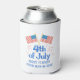 A patriotic red, white, and blue stars and stripes, American flag design. Corporate July 4th Party Can Coolers. Add company/name and year.