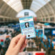 Photo template with logo, company id badge for employees, hospital, nurses, special events meetings. Decorative gradient blue waves and the information on a transparent frame.