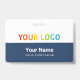 Easily personalise this Custom Horizontal Employee Staff Badge with name, profession, job title and inline business logo. A simple business design in navy blue and white colours fully customisable, sans-serif basic and modern fonts and a professional and clear look. Available with lanyard, metal clip or retractable. Any colour, any font. No minimum order.