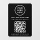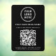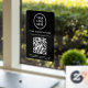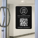 Modern black window cling sign for your company with your QR code for customers to scan for a list of your products, services and prices. Upload your logo and add your business name, phone number and street address in simple white typography. Input your website URL address to generate a scannable QR code.