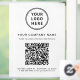 Modern white window cling sign for your company with your QR code for customers to scan for a list of your products, services, prices and other information. Add your logo, business name, phone number and street address in simple typography. Input your website URL address to generate the scannable QR code.