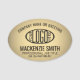**Please note that the background is printed to look metallic, but the product is not made of metal and is not engraved.** Represent your business in style by supplying staff with modern and professional custom logo oval plastic name tags, available with your choice of pin or magnetic backing. Fonts, colours and logo transparency are simple to adjust using the Zazzle design tool. The black and gold design features a faux metallic foil background, your logo and multiple lines of text for employee's first and last name, job position, company, or welcome greeting. Suitable for small businesses to large corporations, these identification badges provide a classic way to present corporate branding, and adds an elegant touch to standard uniforms.
