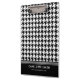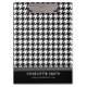 Make a bold statement with this classic style personalised clipboard. A chic design featuring the iconic houndstooth pattern, paired with contrasting stripes. This stylish template includes your name, company name and website, along with your logo on the back. All of the text can be customised or deleted to suit your business needs. Clipboards can be used for organising important papers at meetings, professional presentations, filling out forms and signing documents. This classic design is ideal for many different workplaces and professions, including fashion stylists, beauty consultants, creative directors, interior designers, corporate professionals, and more! Printed colours: black and white.