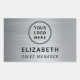Professional name tag sticker with your company, business or organisation's logo against a brushed silver faux metallic background. Add a name and title/position in simple typography.