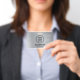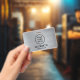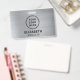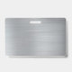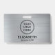 Modern name badge with your company or organisation's logo against a brushed silver faux metallic background. Add a name and title in simple typography.