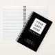 Simple small black notebook for your company, business, or projects, featuring your logo and company information on the front. The back has a smaller version of the same logo at the bottom. (You only need to upload one logo image file.) Personalise with your business name, tag line or slogan, address, phone numbers, email addresses, web site and social media URLs. Clean, straightforward template, suitable for companies, businesses, and organisations big and small.
