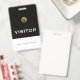 Keep track of visitors and ensure the return of your badges with this black and white visitor badge featuring a brushed metallic copper seal emblem logo that can be customised for your brand with a customisable text banner. The design is eye-catching and professional, perfect for any business or event.