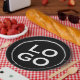 This simple yet sophisticated custom party plate features a black background with a sample company of business logo placed in the center. You can personalize the plate to add your own custom company or business logo.