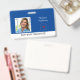 Blue and White Background photo Name Badge. Logo.