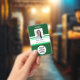 Company photo logo barcode green ID badge